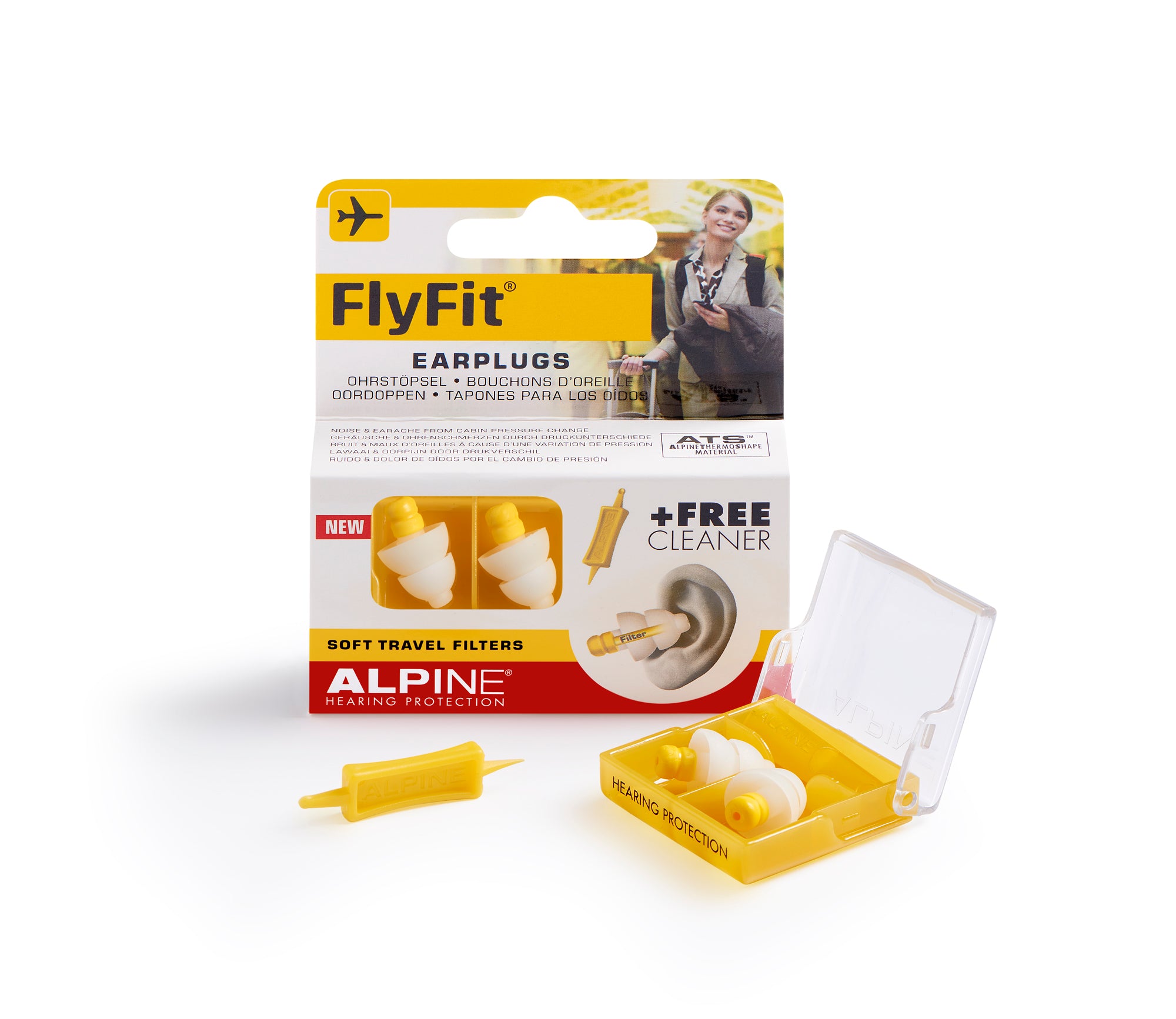 Wearing FlyFit earplugs when flying relieves pressure on the eardrums during takeoff and landing. The filters function as valves, ensuring gradual and consistent pressure balance between the external environment and the middle ear. As a result, the Eustachian tube has enough time to adjust to pressure changes. Secondly, the specific acoustic filters of FlyFit earplugs protect against unwanted ambient noise. The earplugs provide for rest and relaxation during long flights, but they are also ideal for use on bus, rail, and vehicle rides. Pluggies from the Alps Kids earplugs are offered for children who have earaches when flying.