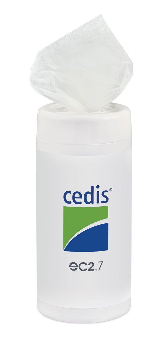 Cedis moist cleansing wipes for ear moulds and hearing aids. Packaged in a handy dispenser with 90 wipes. Moist – disinfectant Cedis Cleansing Wipes are effective against bacteria, HBV and HIV viruses. Use Cedis Cleansing Wipes as follows: wipe the hearing aid and the ear mould thoroughly with the moist wipe, leave the disinfectant agent to do its work for 1 minute, dry the surfaces of the earpiece and the hearing aid with a tissue.