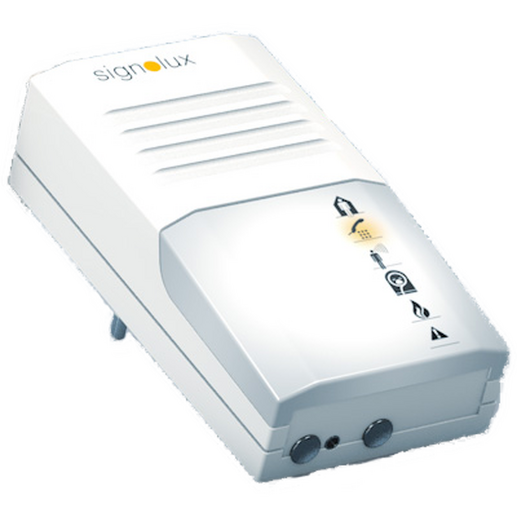 The mains-powered Signolux Plug-in Flash Receiver works with Signolux transmitters to alert you to the doorbell, telephone, a person calling, a baby monitor, a general alarm and a fire alarm. Optional accessories, including a vibrating pad, are available. It is suitable for people with up to profound hearing loss.