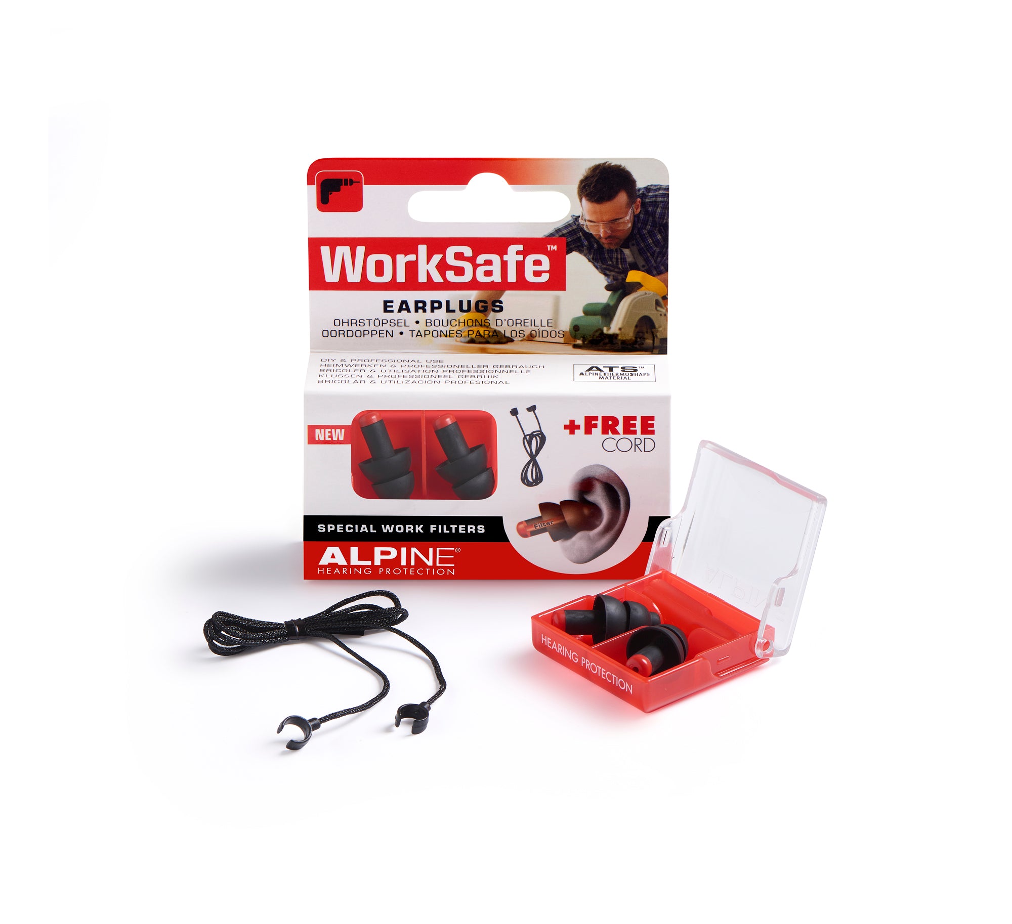 Every pair of WorkSafe earplugs comes with an Alpine carry cord for earplugs so that you can carry the earplugs around your neck if you need to remove them briefly. You simply attach the handy cable to the stem of the earplugs. The use of the carrying cord does not influence the effect of the filters, noise attenuation remains unaffected.